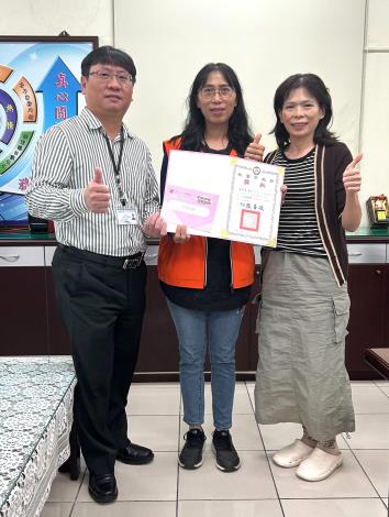 賀!本所志工趙芙絨、賴芷鈴及李美雪3位女士榮獲本所114年度績優志願服務志願星。
